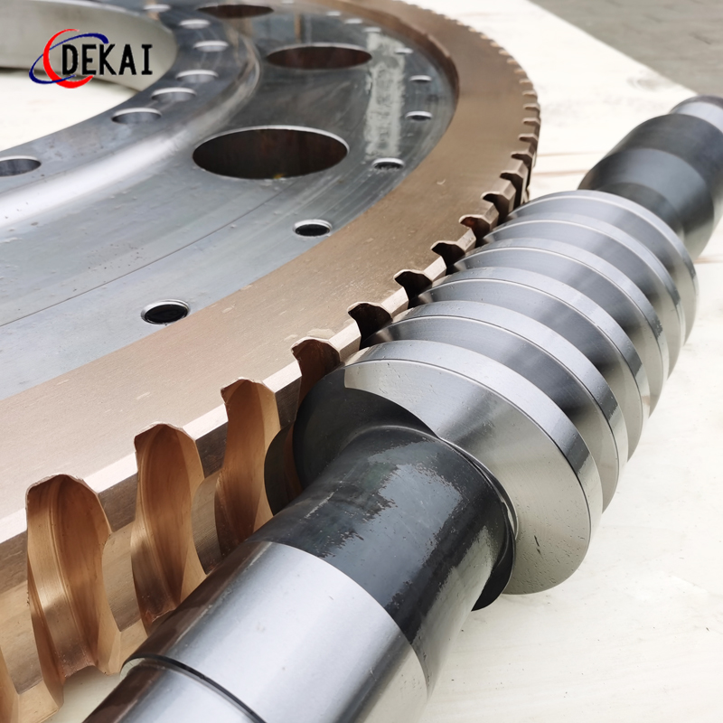 蝸輪磨損。蝸輪一般采納錫青銅,配對的蝸桿材料用45鋼淬硬至HRC4555,或40Cr淬硬HRC5055后經蝸桿磨床磨削至粗糙度Ra0.8m。減速機正常運行時磨損很慢,某些減速機可以使用10年以上。如果磨損速度較快,就要合計選型是否正確,是否超負荷運行,以及蝸輪蝸桿的材質、裝配質量或使用環境等原因。解決方法:潤滑油和添加劑的選用。蝸齒減速機一般選用220#齒輪油,對重負荷、啟動頻繁、使用環境較差的減速機,可選用一些潤滑油添加劑,使減速機在停止運轉時齒輪油依舊附著在齒輪表面,形成保護膜,防止重負荷、低速、高轉矩和啟動時金屬間的直接接觸。添加劑中含有密封圈調節劑和抗漏劑,使密封圈堅持柔軟和彈性,有效減少潤滑油漏。