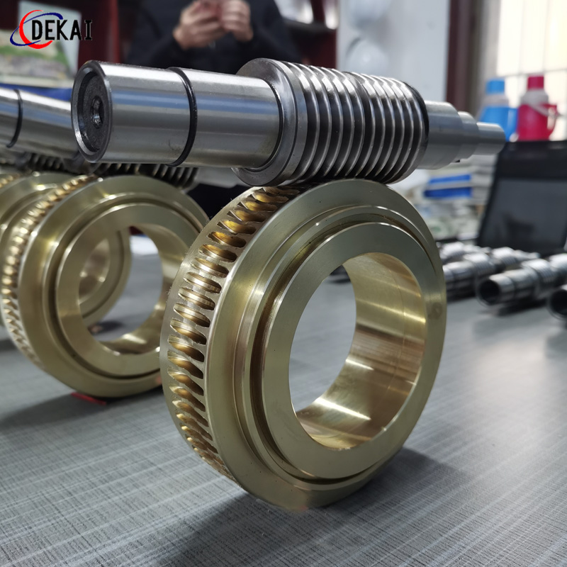 分度精度高,側(cè)隙可調(diào)整至0.01~0.03Mmm;齒面接觸穩(wěn),不會改變中心距。調(diào)整標(biāo)準(zhǔn),方便可靠。裝配靈活,裝配時,用調(diào)整環(huán)來獲得合適的嚙合側(cè)隙。使用中如果因為磨損導(dǎo)致傳動間隙增大,只要調(diào)整一下蝸桿的軸向位置,可以使蝸桿蝸輪傳動副恢復(fù)到原來的精度,不需要更換新的蝸桿,蝸輪,比較實用。蝸桿材質(zhì)采用40Cr,42CrMo、38CrMoAl合金鋼。蝸桿采用錫青銅ZCuSn10Pb1離心澆鑄,具有高強度耐磨性。