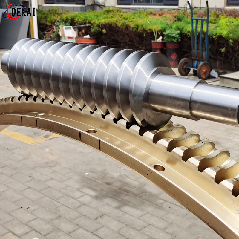 分度精度高,側隙可調整至0.01~0.03Mmm;齒面接觸穩,不會改變中心距。調整標準,方便可靠。裝配靈活,裝配時,用調整環來獲得合適的嚙合側隙。使用中如果因為磨損導致傳動間隙增大,只要調整一下蝸桿的軸向位置,可以使蝸桿蝸輪傳動副恢復到原來的精度,不需要更換新的蝸桿,蝸輪,比較實用。蝸桿材質采用40Cr,42CrMo、38CrMoAl合金鋼。蝸桿采用錫青銅ZCuSn10Pb1離心澆鑄,具有高強度耐磨性。
