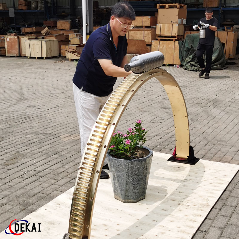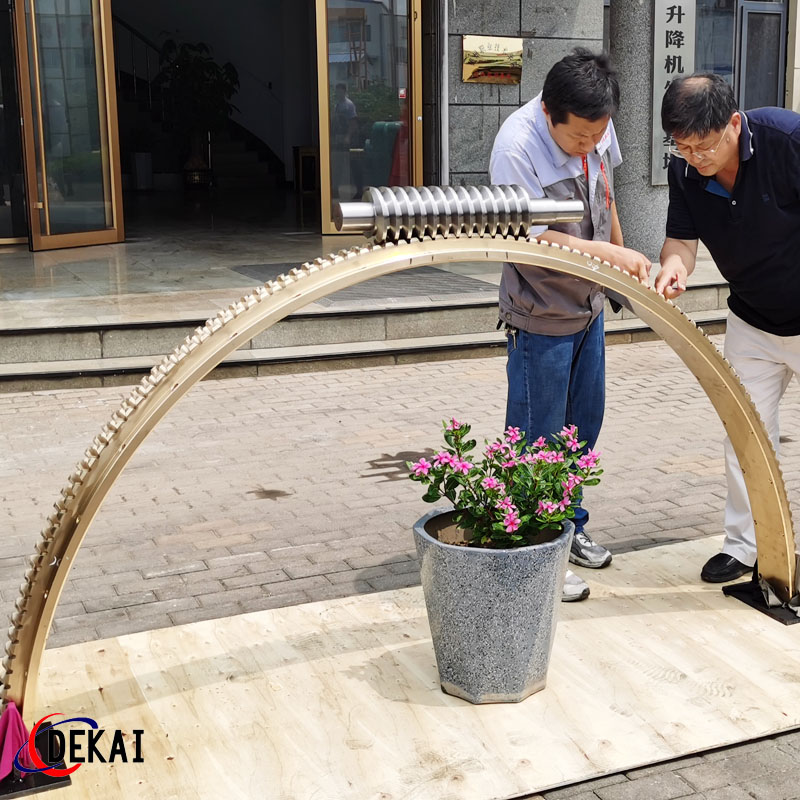 德州德凱減速傳動機械有限公司采用雙蝸桿對消隙原理開發生產的精密蝸輪蝸桿副,主要用于大型機床工作臺的驅動,高精密分割器等無間隙圓周運動精確定位場合。該蝸輪副中心距最大可做到2000mm,單節速比可做到1-365同時不產生回程間隙。